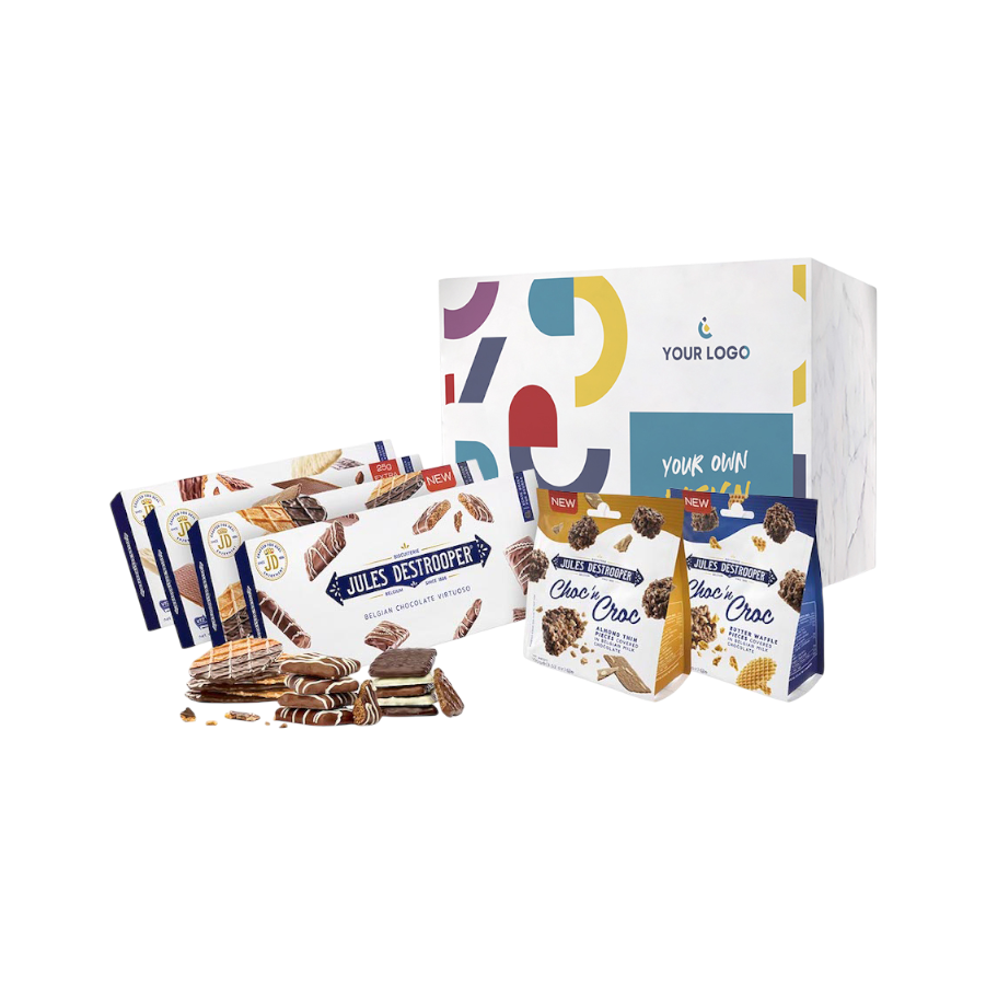 Voeg moeiteloos je logo, slogan of bedrijfskleuren toe. Stem je attenties eenvoudig af op de ontvanger: zet de naam erop en hou zelfs rekening met (dieet)voorkeuren — want een notenmix bij een pinda-allergie? Dat is een grote no(ot)!